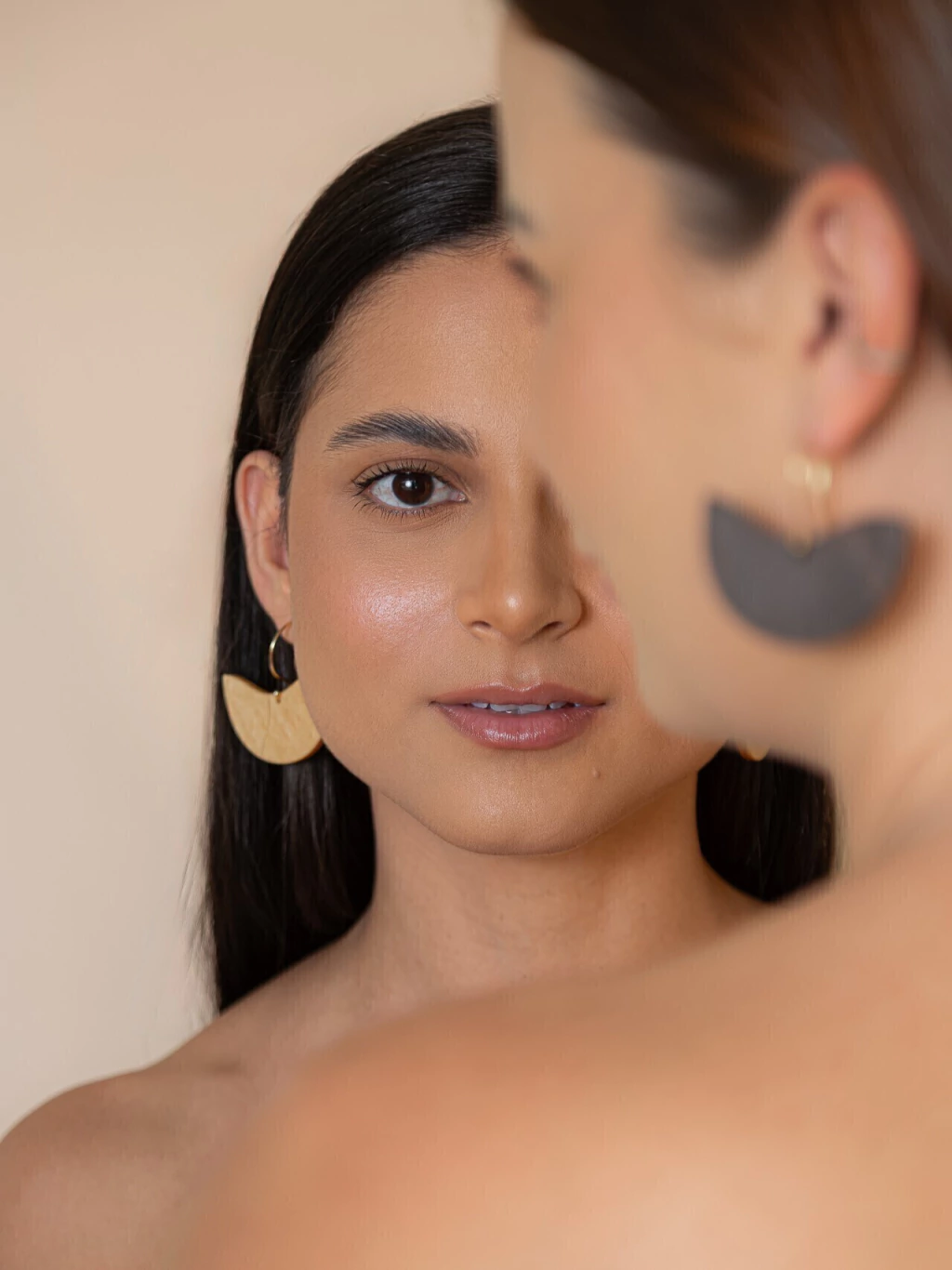 Brinco Omí: Curvas suaves em Madeira Marfim e Ouro 18k