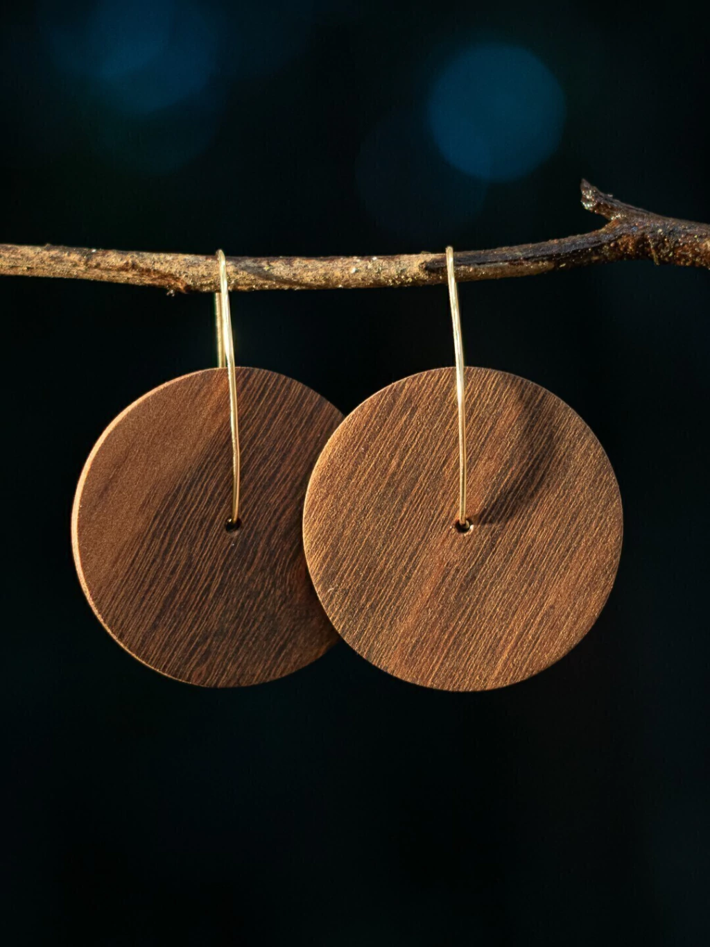 Brinco Orun: Elegância Artesanal em Madeira Muiracatiara e Ouro 18k